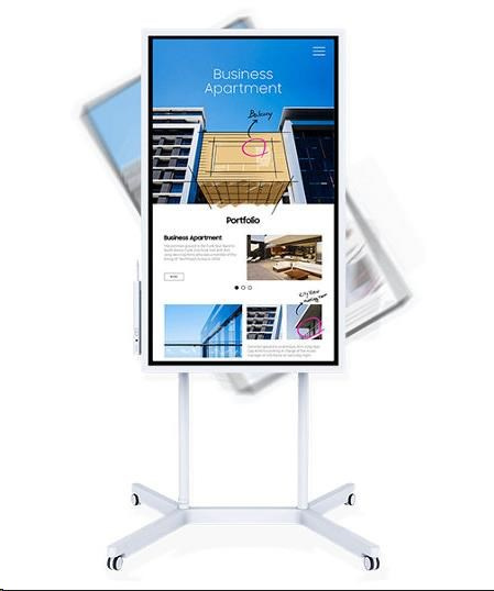 Upravte si Samsung Flip do tej správnej polohy. Je umiestnený na ergonomickom a nastaviteľnom stojane, takže umožňuje prezentovať vaše nápady v horizontálnej aj vertikálnej polohe presne podľa vašich potrieb.