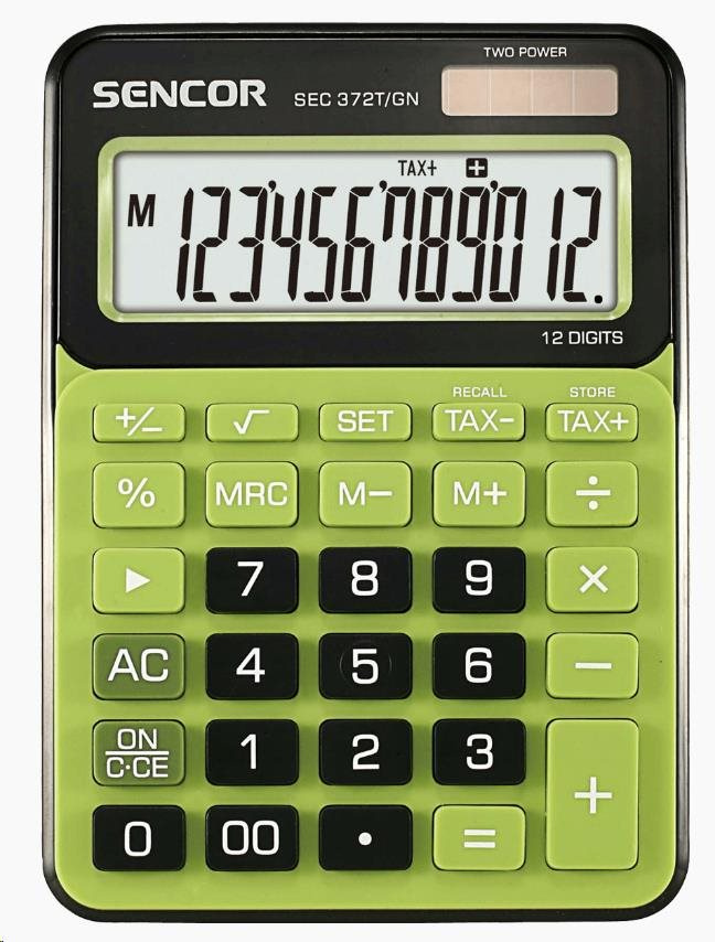Stolný kalkulátor 12-miestny displej Výpočty s DPH Korekčné tlačidlo Výpočet marže Výpočet odmocniny Výpočet percenta Nezávislá pamäť Duálne napájanie Automatické vypnutie Rozmery: 104x149x22mm (šxvxh) Hmotnosť: 120 g farebné prevedenie : zeleno čierne EAN 8590669162970