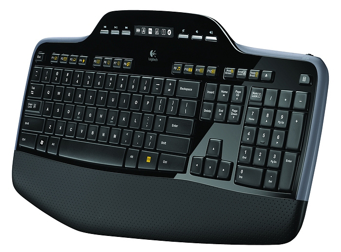 * Klávesnice obsahuje klávesy Logitech® Incurve Keys™ a měkkou opěrku zápěstí. Vyduté klávesy podporují správnou polohu prstů a jejich jemně zaoblené hrany umožní konečkům prstů po celé hodiny plynule přecházet mezi klávesami. Klávesy jsou tak pohodlné, že vás napadne, zda nebyly vyrobeny přímo pro vaše prsty.