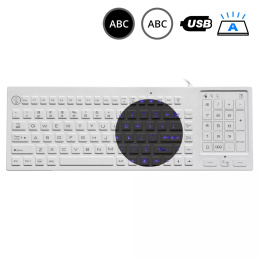 SK318BL – Silikonová antibakteriální klávesnice s touchpadem podsvícená, CZ, USB, IP68SPECIFIKACE • omyvatelná silikonová klávesnice s podsvícením • klávesnici lze čistit všemi běžnými dezinfekčními prostředky • antibakteriální povrch ze 100% silikonu (bez latexu) • 2v1 multi-touch touchpad (touchpad a numerická klávesnice) • tlačítko pro vypnutí klávesnice při čištění (zabrání nechtěnému stisku kláves) • kompatibilní se všemi běžnými OS (Plug & Play) • připojení přes USB 2.0 • 88 kláves • rozměry 380 x 130 x 13 mm • stupeň krytí IP68 (odolná vůči vodě a prachu) • bílá barva (lze dodat i v černé variantě)