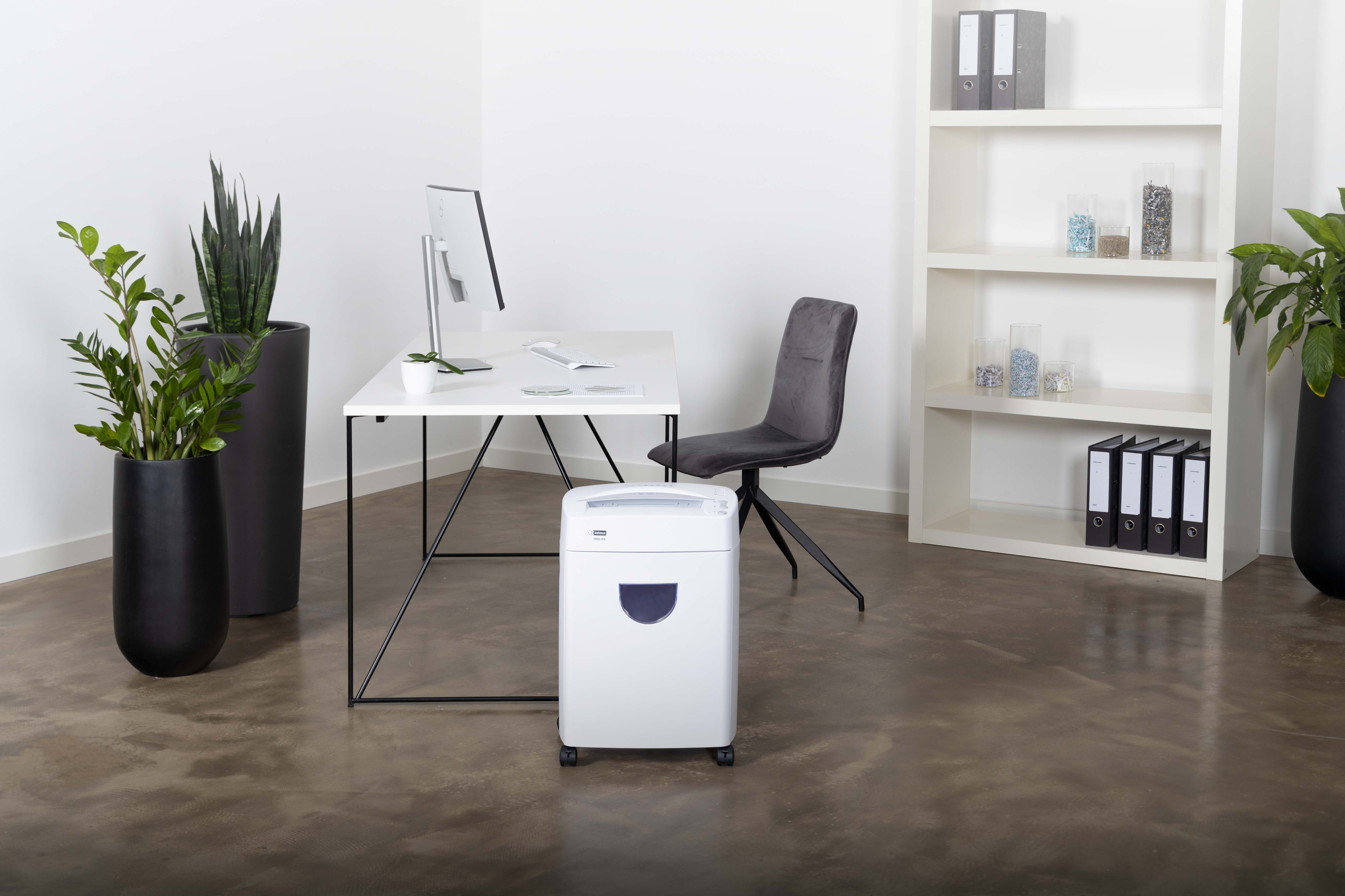 - Skartovačka s příčným řezem 4,3 x 33 mm - Skartace papíru, svorek, sponek, kreditních karet a CD/DVD - Objem odpadové nádoby 32 l - Maximální kapacita skartace až 17 listů papíru 80 g/m2 - Vstupní šíře 235 mm - Hlučnost <60 dB - Úroveň zabezpečení P-4 - Rychlost řezu 0,023 m/s - Až 8 min nepřetržité skartace - Vstupní otvor pro kreditní karty a CD/DVD - Automatický start / stop a automatický zpětný chod - Indikátor přehřátí - Stabilní základ na čtyřech kolečkách - Rozměr 600 x 400 x 300 mm