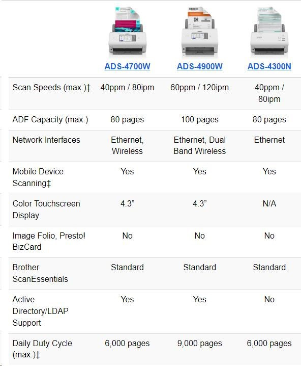 | Included Software‡ | Kofax PaperPort™ SE s OCR pre Windows, Brother ScanEssentials pre Windows, Brother Mobile Connect pre iOS a Android™, Brother iPrint&Scan (desktop) pre Windows a Mac® | |