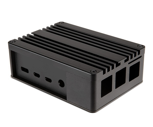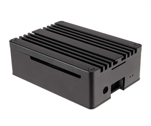 Krásně vytvořené hliníkové pouzdro. Tepelná souprava s vrchním krytem chladiče chladí a chrání Raspberry Pi 4. Plná podpora I/O.