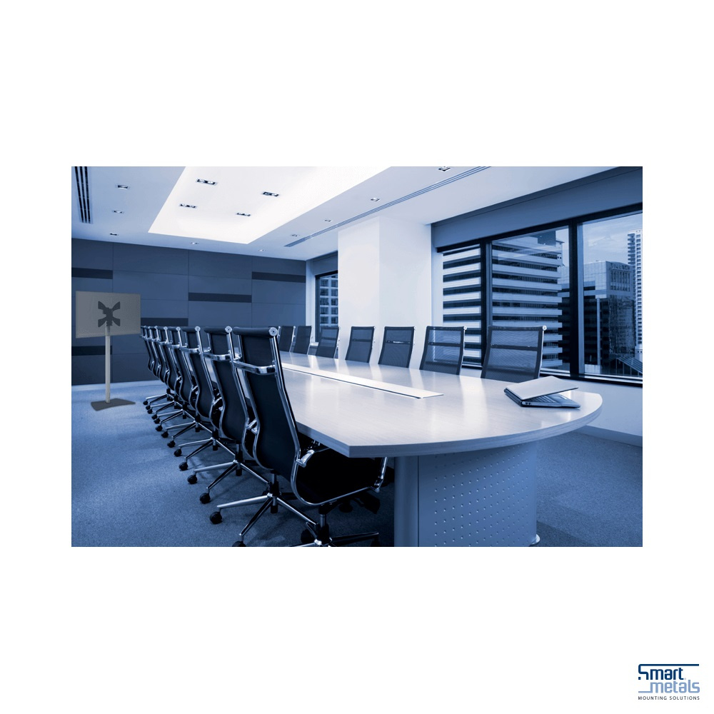 Displej umístíte i do malé místnosti Stojan SmartMetals 062.0550 vám umožní instalovat displej s úhlopříčkou až 150 cm i v malé zasedací místnosti nebo tam, kde není možné vrtat do stěny. Optimální pozorovací výšku středu displeje nastavíte v rozmezí 130 a 150 cm. Díky nenápadnému a tenkému, ale stabilnímu podstavci působí stojan i s velkou obrazovkou velmi vzdušně a hodí se i do designových interiérů.
