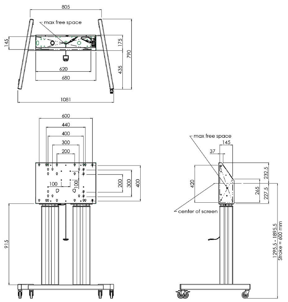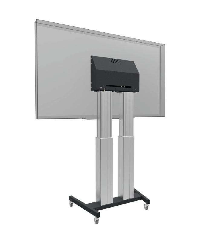 Motorizovaný pojízdný zdvih největších displejů Stojan s elektrickým zdvihem využijete především v oblasti vzdělávání, digitální tvorby nebo produktového a firemního marketingu. Model 062.7105 nabízí snadnou změnu výšky stojanu až o 600 mm, takže střed obrazovky se může pohybovat v rozpětí 1 295,5 – 1 895,5 mm.