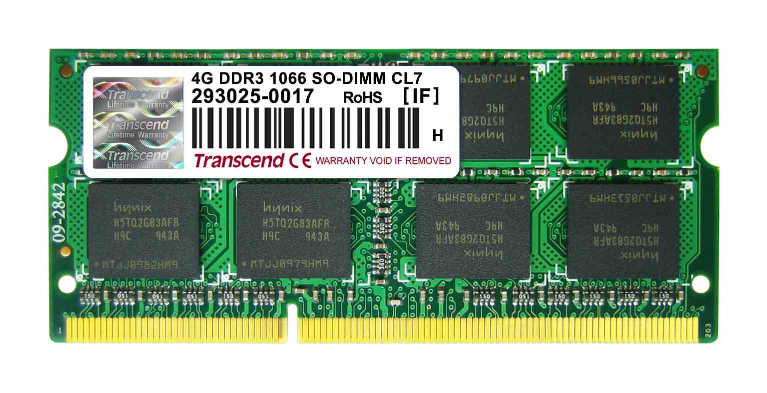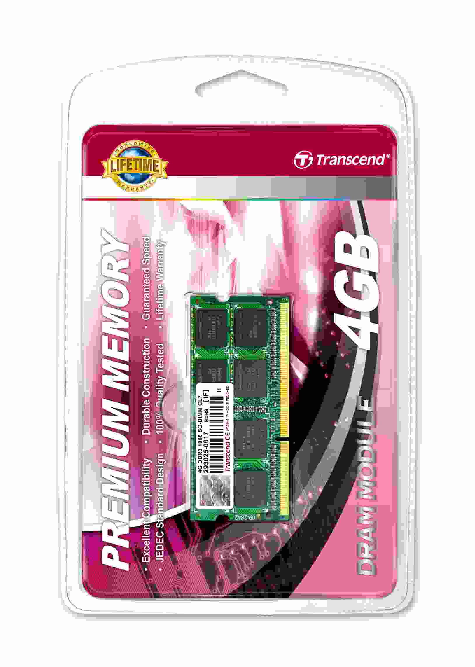 SODIMM DDR3 4GB 1066MHz TRANSCEND 2Rx8 CL7, maloobchod