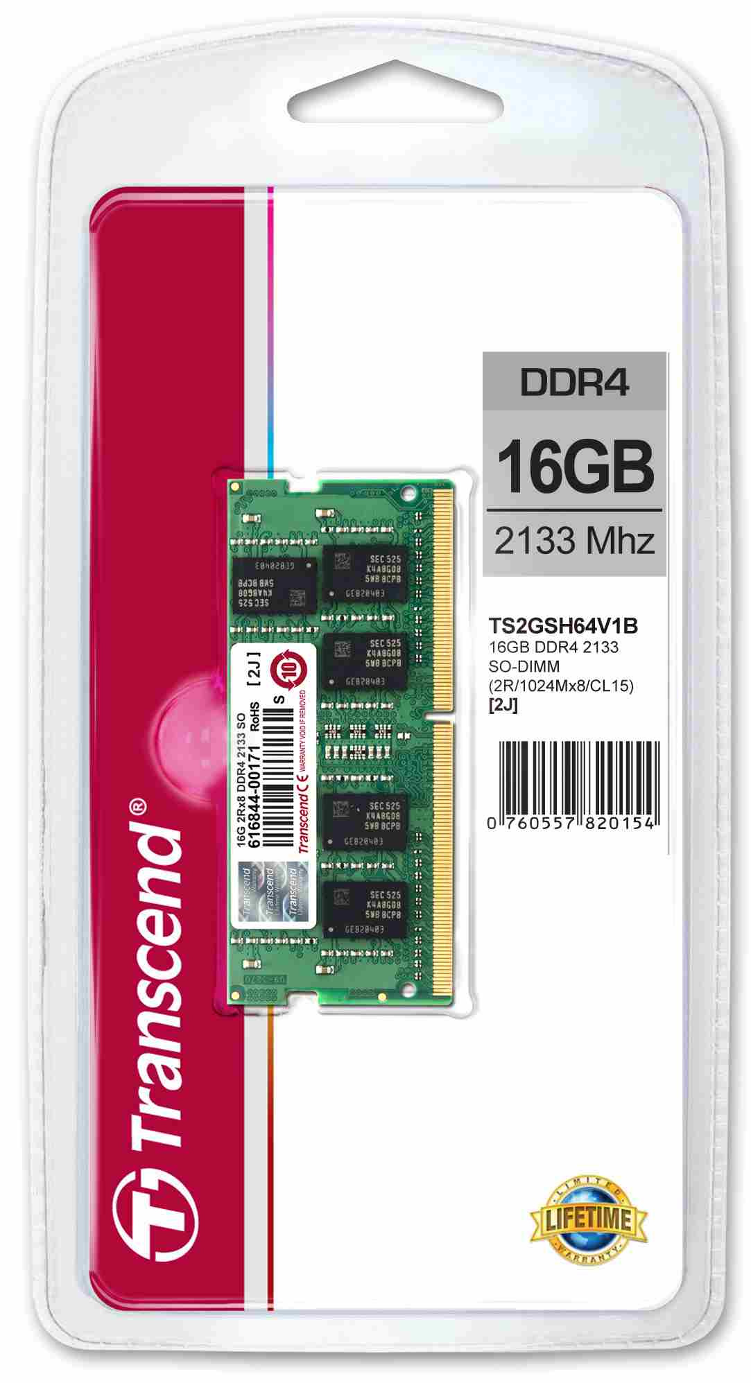 Popis SODIMM DDR4 16GB 2133MHz TRANSCEND 2Rx8 CL15 RETAIL