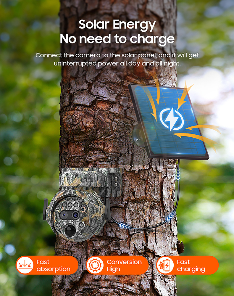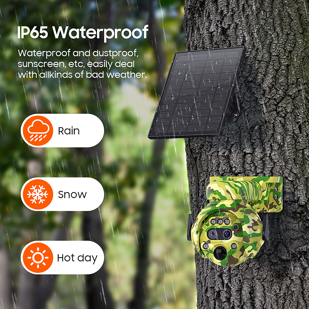 Kamera je vybavena třemi vestavěnými bateriemi s kapacitou 7800 mAh, které jsou napájeny solárním panelem. Tím zajišťuje nepřetržitý provoz bez nutnosti připojení k elektrické síti. Solární kamera Viking HDs04 4G je odolná vůči extrémním teplotám (-30°~+60°) a vlhkosti (0%~90%), což ji činí ideální pro venkovní i vnitřní použití.