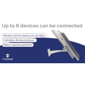 Zajišťuje stabilní Wi-Fi signál až pro 8 zařízení s maximálním dosahem 60 metrů ve volném prostoru.