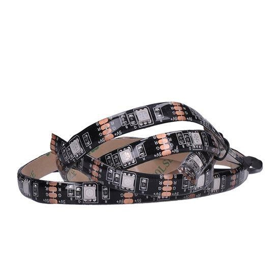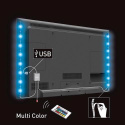 Diaľkovo ovládaný LED pásik určený pre TV a PC napájaný pomocou USB pomáha predchádzať únave očí dĺžka pásika: 2x 50cm 30 x SMD 5050 LED/1m teplota svetla/chromatičnosti: RGB (multicolor) krytie IP65 (Ochrana proti striekajúcej vode, vhodné na vonkajšie použitie) (prachotesné a vodotesné) pásik je možné skratiť podľa potreby obojstranná samolepiaca páska 3M na zadnej strane dĺžka napájacieho kábla: 100cm diaľkový ovládač manuálny vypínač napájanie: USB A konektor farba pásika: čierna