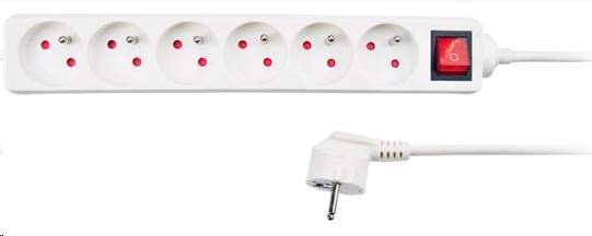 Solight prodlužovací přívod, 6 zásuvek, bílý, vypínač, 1,5m
