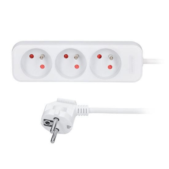 Praktický biely predlžovací kábel s dĺžkou 3 metre a tromi zásuvkami umožní priviesť elektrickú energiu tam, kde nie je k dispozícii pevná zásuvka. Ideálny pre domáce aj kancelárske využitie.