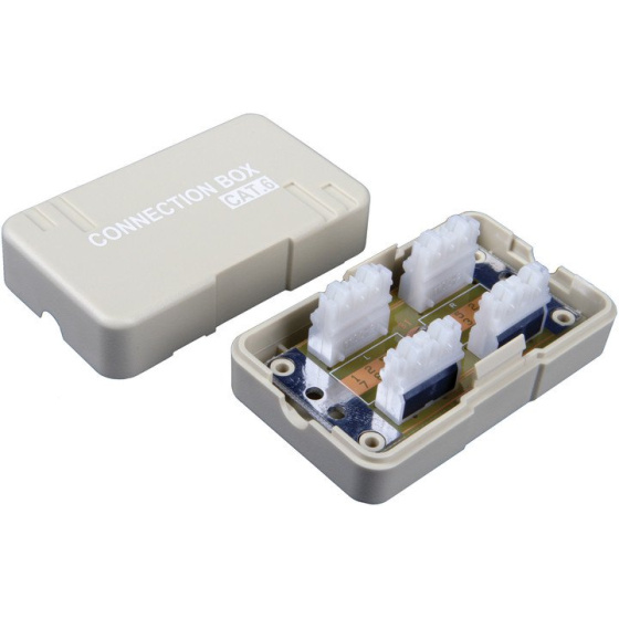 Spojovací box Solarix s označením KRJ45-VEB6 lze použít pro křížové propojení dvou nestíněných čtyřpárových instalačních kabelů kategorie 6 nebo pro jejich prodloužení či spojení. Do tohoto spojovacího boxu, který je osazen IDC svorkovnicí Krone lze zařezat vodiče typu drát o velikosti AWG 26 – 22. Barva boxu Solarix je šedá, rozměry 68,9mm (š) x 40,8mm (h) x 26,3 mm (v).