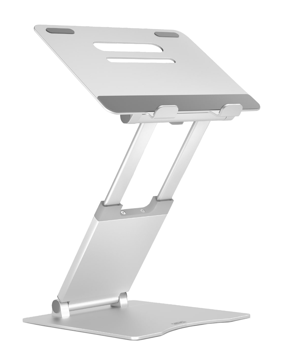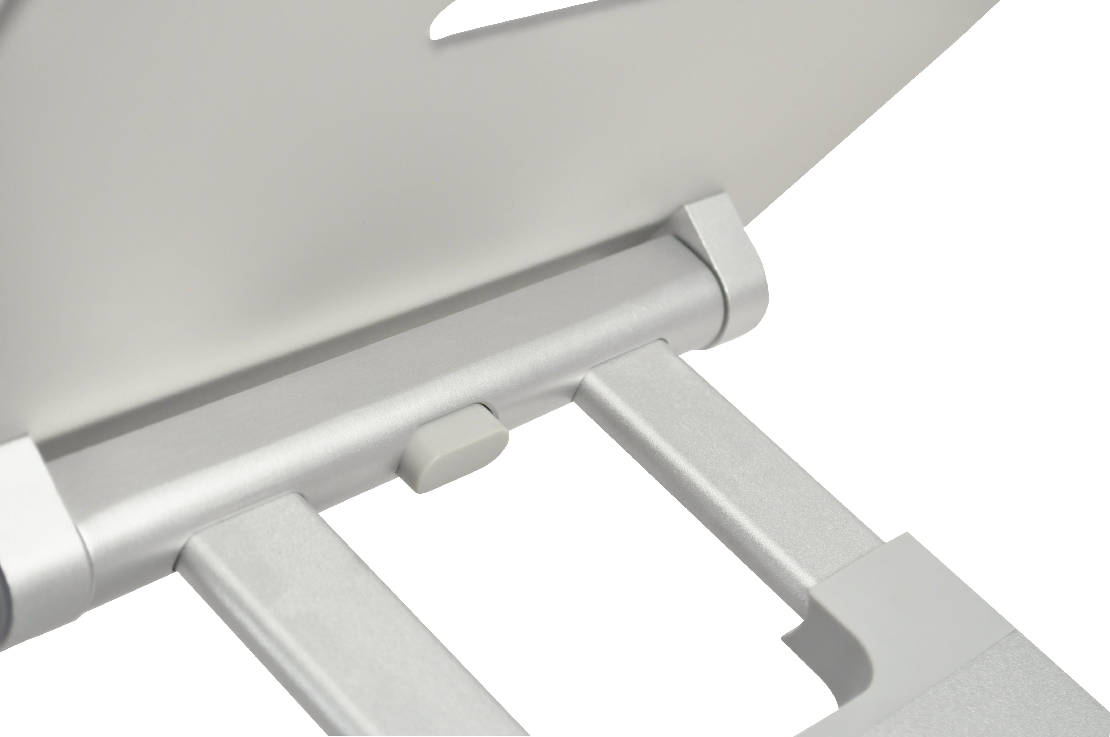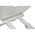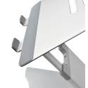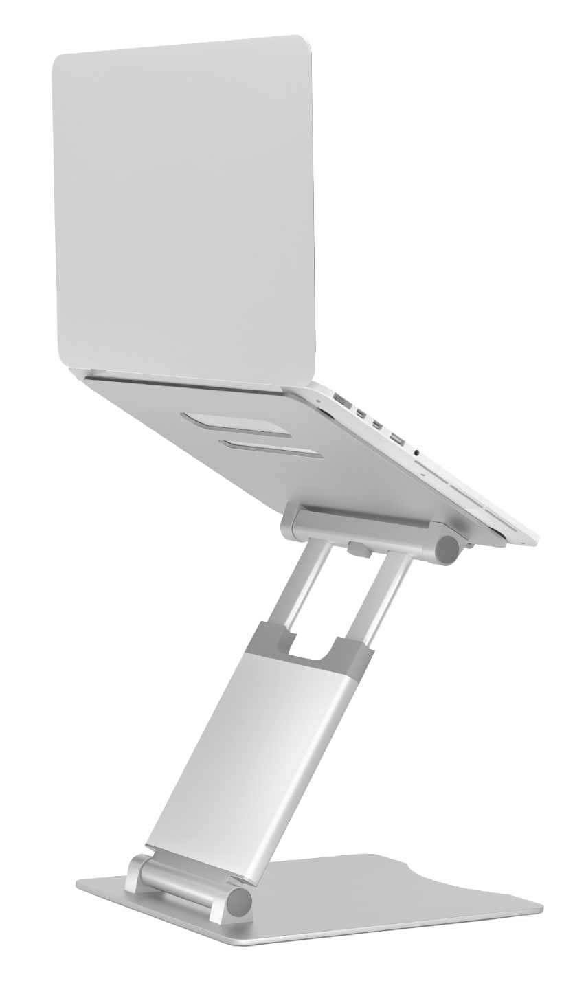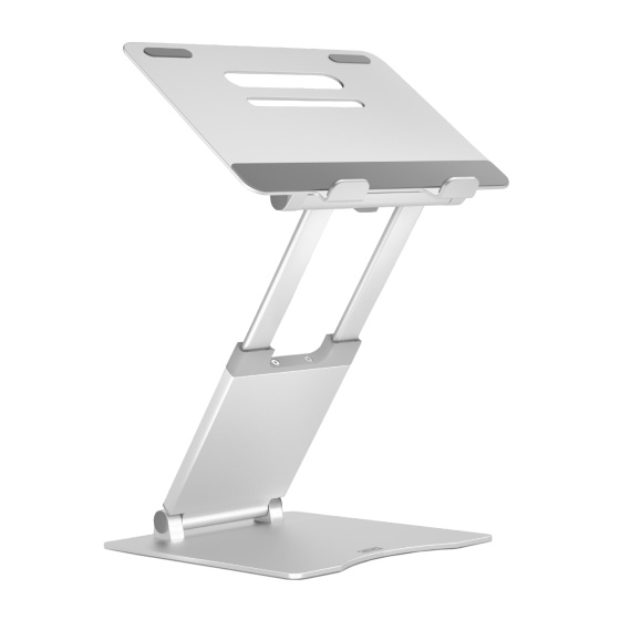 - Plně a snadno nastavitelná z hliníkové slitiny - Výškové nastavení 30 až 450 mm - Rozměr obrazovky až 17" - Protiskluzový povrch s odvětrávacími otvory pro lepší chlazení notebooku - Nastavitelný v libovolném úhlu až do 70° a možností mít notebook v rovině nebo vyvýšený - Rozměr 265 x 270 x 55 mm (složený) - Váha 1650 g