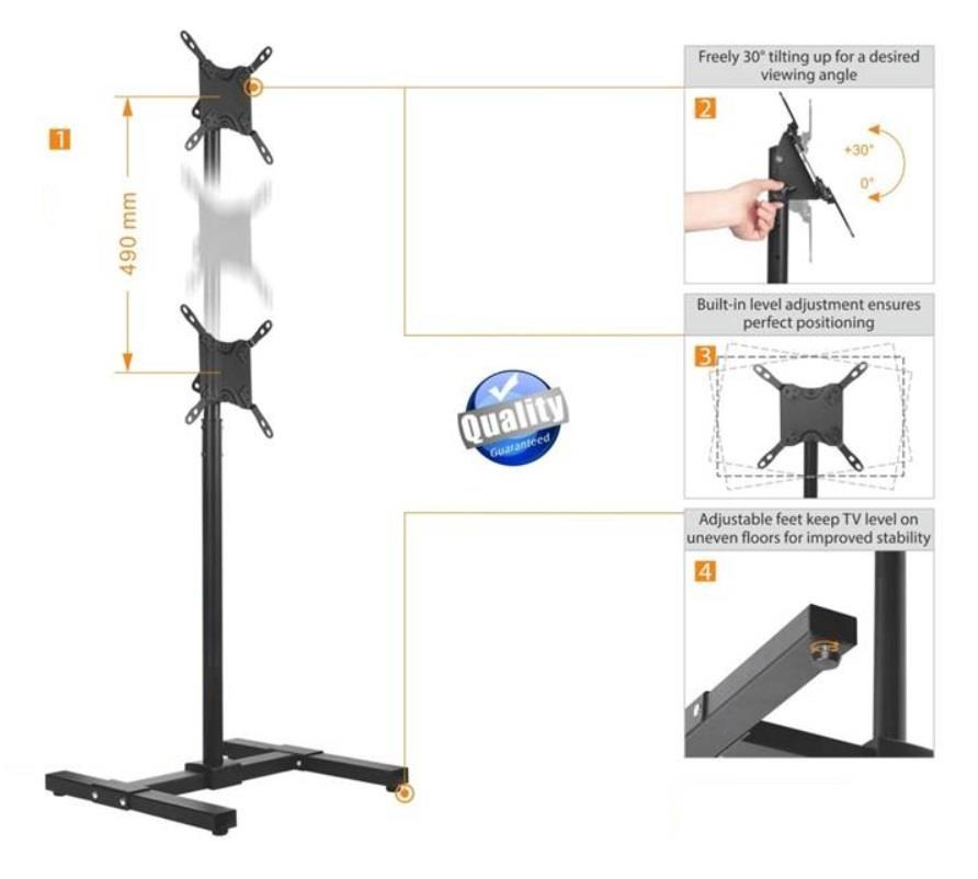 Stojan na televíziu alebo monitor Fiber Mounts FM11 Kvalitný stojan na TV alebo monitor 13-43", nastavenie výšky 750-1240mm, naklonenie obrazovky 0-30°, korekcia roviny, VESA 75x75 až 200x200, nosnosť 20kg Kvalitný a elegantný podlahový stojan na televíziu, monitor alebo dotykové displeje s uhlopriečkou 13-43" (prípadne aj väčšie), nastaviteľná výška 750-1240mm a možnosť nastavenia sklonu 0-30°. Stojan podporuje VESA štandardy 75x75 až 200x200 a je vhodný na obrazovky s hmotnosťou až 20kg. Výborná stabilita, ľahké nastavenie do požadovanej polohy, kovová konštrukcia. Farebné prevedenie čierne, záruka 10 rokov. Stojan na televíziu, monitor, displej 13-43" Fiber Mounts FM11 Technické údaje: nosnosť 20kg podporuje VESA štandardy 75x75 až 200x200 ideálny na televízie, monitory a displeje s uhlopriečkou 13" až 43" nastaviteľná výška 750mm až 1240mm nastaviteľný náklon obrazovky 0° až +30° korekcia roviny +/- 3° rozmery podstavca 502x454mm (šírka x hĺbka) kvalitná kovová konštrukcia výborná stabilita farebné prevedenie čierne záruka 10 rokov