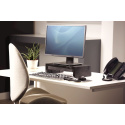 • moderní design • usnadňuje organizaci pracovního prostoru • určen pro LCD a TFT monitory do maximální hmotnosti 18 kg • možnost regulace výšky - 3 pozice: 110, 130, 150 mm • integrovaná zásuvka na drobné kancelářské příslušenství • protiskluzové gumové nožičky • snadná instalace bez nutnosti použití nástrojů • materiál : plast • barva : černá • rozměry : 111×406×238 mm Doporučen Mezinárodní akademií pro ergonomické produkty FIRA™