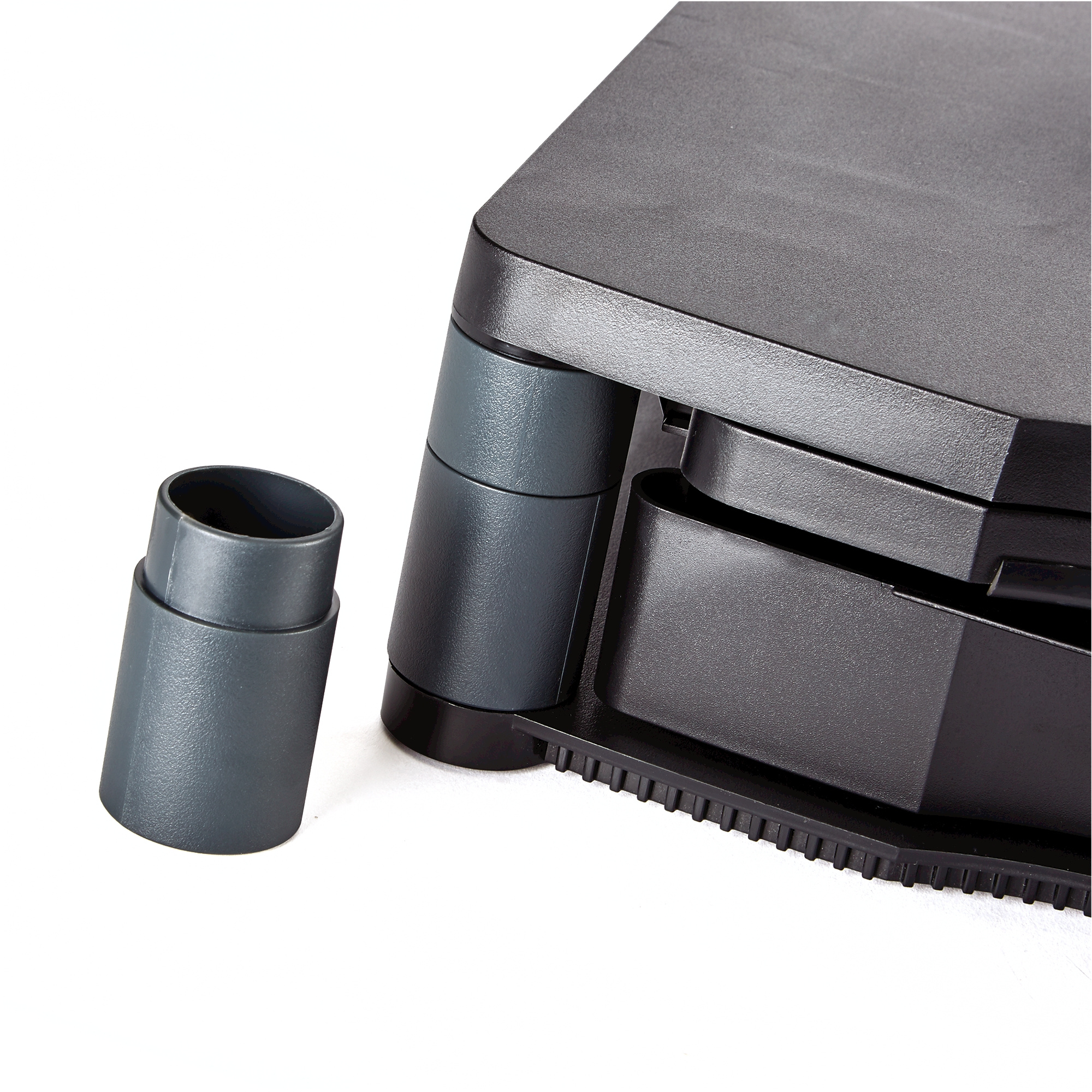 • usnadňuje organizaci pracovního prostoru • vysouvací zásuvka na dokumenty • určen pro LCD a TFT monitory do velikosti 21" a maximální hmotnosti do 36 kg • tři sady vzpěr umožňují nastavení pěti různých výšek stojanu: 64 až 165 mm • otvory v zadní části usnadňují vedení kabelů • odolná plastová základna • ze 100% je vyroben z recyklovaných materiálů • snadná instalace bez nutnosti použití nástrojů • materiál : plast • barva : tmavě-grafitová • rozměry : 340×166×338 mm