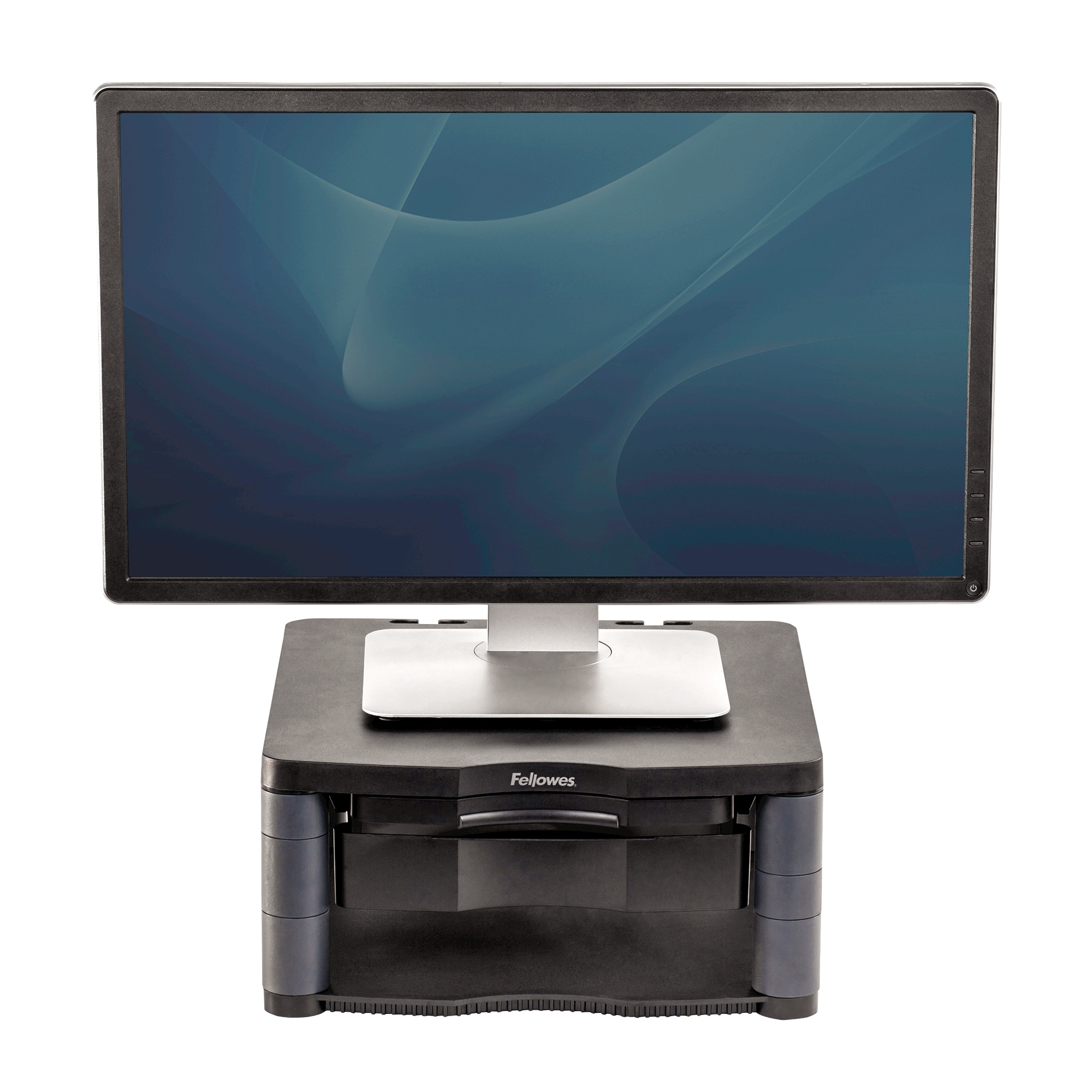 Používáním stojanu pod monitor Fellowes PREMIUM PLUS předcházíte bolesti šíje a krční páteře. Umožňuje nastavení monitoru na úroveň očí, čím zmírňuje svalové napětí ramen a krku. Vhodné do kanceláře i domácnosti. Určen pro LCD / TFT monitory do velikosti 21" a maximální hmotnosti do 36 kg.