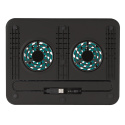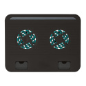 Stojánek na notebook se dvěma vestavěnými tichými ventilátory poskytuje nakloněnou pozici pro pohodlné psaní a ochranu před přehřátím
