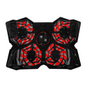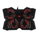 Chladicí stojánek GXT 278 pro notebooky 17,3” se 4 podsvětlenými ventilátory s nastavitelnými otáčkami v robustním pouzdru * Pro všechny notebooky s úhlopříčkou až 17,3 palce. * Chladí notebook a zajišťuje jeho vyšší výkon. * Výška je nastavitelná ve třech polohách pro optimální pohodlí. * 4 červeně podsvícené ventilátory pro ideální proudění vzduchu. * Otáčky ventilátorů jsou nastavitelné a lze je dokonce vypnout. * Vestavěná přihrádka na kabel pro snadné přenášení
