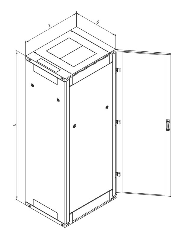– Dveře jednokřídlé nebo dvoukřídlé ve variantách celoplechové, perforované (80 % a 86 % prostupnost) nebo prosklené s bezpečnostním tvrzeným sklem 4mm. Mohou být na přední i zadní straně rozvaděče.