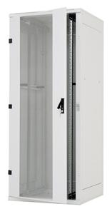 Popis: • 19“ stojanový rozvaděč s krytím IP 20 • Součástí rozvaděče jsou 4 posuvné vertikální lišty k instalaci zařízení (6 lišt pro rozvaděče hlubší než 800 mm). • Konstrukce rozvaděče: – ocelový svařovaný skelet s odnímatelnými krycími panely – dveře síto prost. 80 procent, levé • Tyto rozvaděče jsou hlavně určeny k instalaci datových a telekomunikačních zařízení a jejich distribučních systémů. • Rám rozvaděče a všechny oddělitelné části (boční a zadní kryty, dveře…) jsou propojeny pomocí zemnících kabelů, které musí být důkladně připevněny a zasunuty do konektorů po celou dobu užívání rozvaděče. • Na spodní části rozvaděče je umístěn šroub M8 jako hlavní zemnící bod. • Kabelové vstupy kryté vylamovacími záslepkami jsou umístěny v horní a ve spodní části rozvaděče.