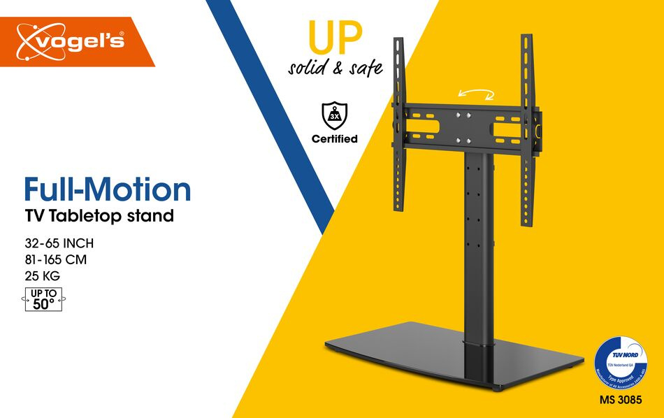 Pro televizory s úhlopříčkou od 32 do 65 palců (165 cm) Montáž televizoru na požadované místo bez vrtání? I to je možné! MS 3085 je robustní stolní stojan na televizor, který lze umístit na skříňku nebo jiný nábytek. Televizor s úhlopříčkou od 32 do 65 palců a hmotností až 25 kg postavíte během chvilky.