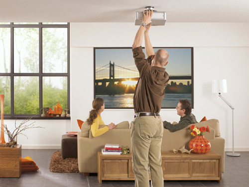 rychlé sejmutí a znovu nasazení projektoru díky bajonetovému úchytu po sejmutí lze projektor nahradit bílým krytem, který zakryje stropní úchyt a kabely