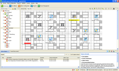 * Informační zprávy SNMP integrované do systému správy podniku umožňují uživatelům zobrazovat výstrahy generované zařízeními, která jsou pod správou aplikace InfraStruXure Central.