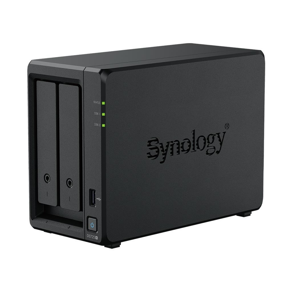 DS725+ ponúka zabudované 2.5GbE pripojenie a podporuje ako SATA SSD, tak HDD v interných pozíciách 2.5"/3.5", rovnako ako M.2 NVMe disky cez M.2 sloty na použitie ako cache.