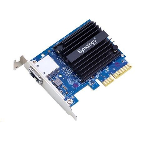 E10G18-T1 s konektorom RJ-45 a podporou štandardu IEEE 802.3an/bz (10GBASE-T/NBASE-T) a 802.3x, čo pomáha hladko migrovať existujúcu infraštruktúru do sieťového prostredia 10GbE. Vďaka podpore spätnej kompatibility a automatického vyjednávania medzi rýchlosťami 10 Gb/s, 5 Gb/s, 2,5 Gb/s, 1 Gb/s a 100 Mb/s poskytuje E10G18-T1 cenovo výhodné riešenie na prekonanie obmedzení prenosu dát v malých firmách a domácnostiach. Stránky produktu: https://www.synológia.com/en-US/products/E10G18-T1 Technické špecifikácie:
