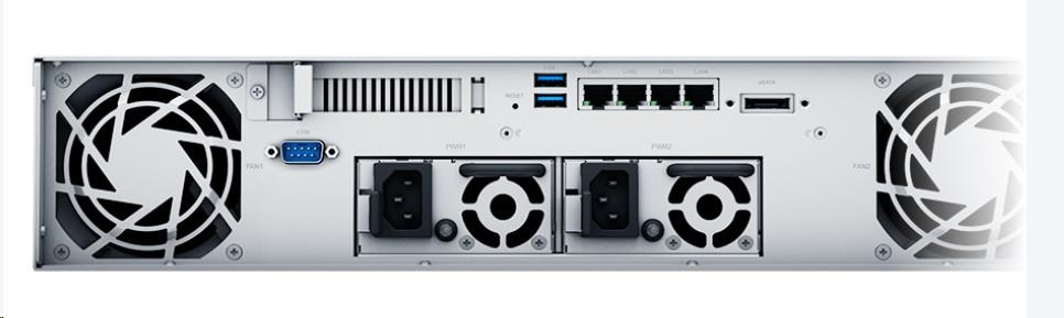 Zařízení RS1221+/RS1221RP+ s hloubkou pouhých 30 až 38 cm je určeno pro nasazení v místech s nedostatkem prostoru. Zařízení RS1221+/RS1221RP+ se může pochlubit hodnotou IOPS při náhodném čtení 4K přes 100 000 a rychlostí sekvenčního čtení 2315 MB/s*1 a je tedy vybaveno pro zvládání náročných pracovních zátěží. Redundantní napájení zařízení RS1221RP+ představuje další úroveň ochrany.