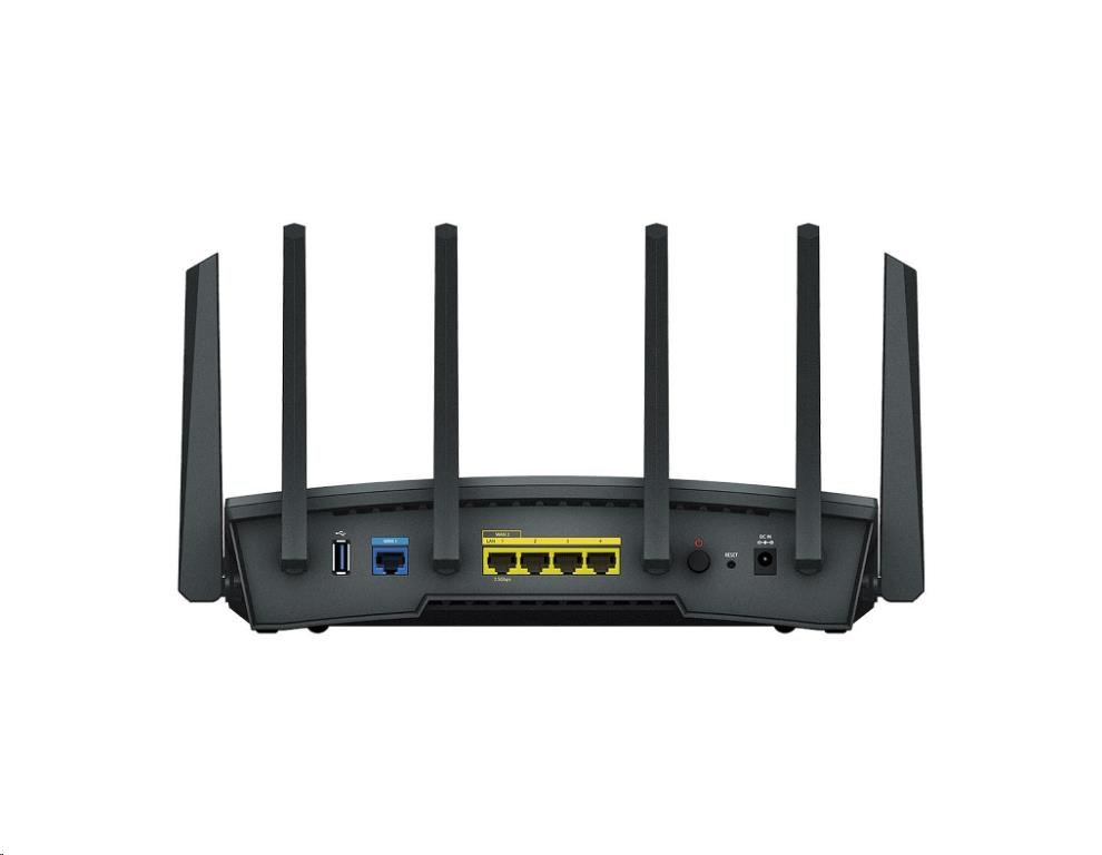 trojpásmový router RT6600ax je založený na novom štandarde Wi-Fi 6 a ponúka prenosovú rýchlosť až 6,6 Gb/s v kombinovanej bezdrôtovej prevádzke. Jeho tri rádiá pracujú v spojení s konfigurovateľným 2,5GbE WAN/LAN portom, aby sa zabezpečila maximálna rýchlosť pripojenia pre jednotlivé zariadenia. Zariadenie RT6600ax je poháňané naším neustále sa vyvíjajúcim operačným systémom Synology Router Manager a je navrhnuté tak, aby zjednodušilo zabezpečenie a správu siete.