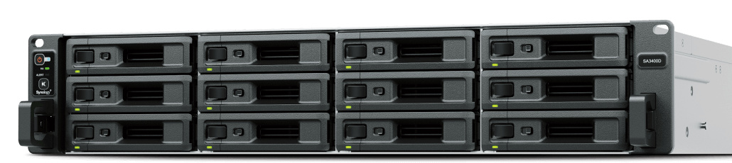 Synology SA3400D RackMount NASZajištění online provozu služeb pomocí efektivního úložiště s vysokou dostupnostíKlíčové vlastnosti *Zajištění dostupnosti dat pomocí duálního modulu řadiče s vysokou dostupností v konfiguraci aktivní-pasivní *Správa, distribuce a ochrana dat, zálohování koncových bodů a ochrana fyzického majetku *Propustnost sekvenčního čtení/zápisu přes 3500/2900 MB/s1 a maximální kapacita úložiště přes 500 TB2 *Přidání kapacity úložiště na vyžádání *Zvýšení výkonu sítě a vstupu/výstupu SPECIFIKACE: Moduly ovladače: 2 PROCESOR: *Model – Intel Xeon D-1541 (na řadič) *Frekvence - 8jádrový 2,1 základní / 2,8 turbo GHz Paměť: * Paměť – 8 GB DDR4 ECC UDIMM (na řadič) * Celkový počet slotů - 4 (na řadič) Úložný prostor: *Kompatibilní typy disků – 3,5” dvouportový SAS HDD / 2,5” dvouportový SAS SSD Externí porty: *RJ-45 1GbE LAN port 2x (s podporou Link Aggregation / Failover) (na řadič) *RJ-45 1GbE LAN port 1x (na řadič) PCIe: *1 x Gen3 x8 slot (x8 link) (na řadič) Souborový systém: *Interní disky - Btrfs / EXT4 Vzhled: *Formát - 2U *Rozměr (ŠxHxV) - 482 mm x 88 mm x 724 mm *Hmotnost - 19,7 kg Obsah balení *Hlavní jednotka X 1 *Balíček doplňků X 1 *Napájecí kabel střídavého napětí X 2 *Stručná instalační příručka X 1