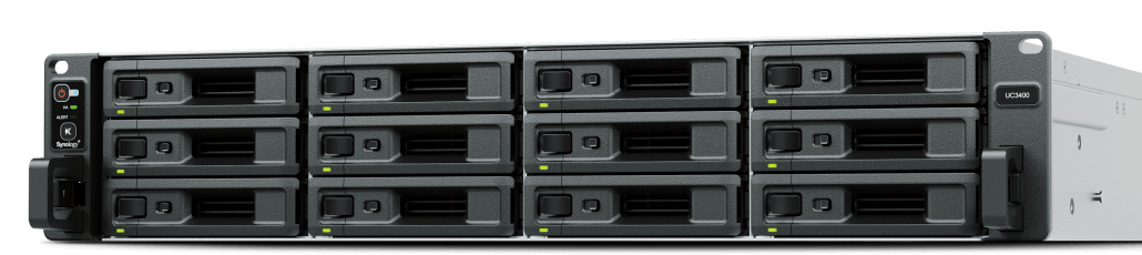 Synology UC3400 Rack stationServer SAN active-active pro kritické provozyKlíčové vlastnosti *Zajištění plynulých služeb iSCSI a FC *Více než 180 000 náhodných zápisu IOPS 4K a úložiště o velikosti až 576 TB *Plná podpora nejpoužívanějších virtualizačních systémů *Flexibilní možnosti připojení k síti *Vestavěná ochrana dat a zabezpečení SPECIFIKACE: Moduly ovladače: 2 PROCESOR: *Model – Intel Xeon D-1541 (na řadič) *Frekvence - 8jádrový 2,1 základní / 2,8 turbo GHz Paměť: * Paměť – 8 GB DDR4 ECC UDIMM (na řadič) * Celkový počet slotů - 4 (na řadič) Úložný prostor: *Kompatibilní typy disků – 3,5” dvouportový SAS HDD / 2,5” dvouportový SAS SSD Externí porty: *RJ-45 1GbE LAN port 2x (s podporou Link Aggregation / Failover) (na řadič) *RJ-45 10GbE LAN port 1x (na řadič) PCIe: *1 x Gen3 x8 slot (x8 link) (na řadič) Souborový systém: *Interní zařízení - Btrfs Vzhled: *Rozměr (ŠxHxV) - 482 mm x 88 mm x 724 mm *Hmotnost - 19,7 kg Obsah balení *Hlavní jednotka X 1 *Balíček doplňků X 1 *Napájecí kabel střídavého napětí X 2 *Stručná instalační příručka X 1
