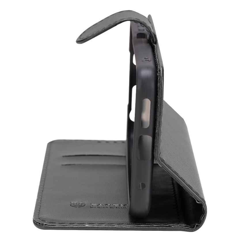 Tactical Field Notes pouzdro s otevíráním do boku, ve stylovém provedení věrné imitace kůže a zavíráním s přezkou na magnet. Pouzdro je precizně provedené, všechna ovládací tlačítka a konektory jsou volně přístupné. Vnitřní vanička pro telefon je vyrobena z pevného plastu a má výřez pro fotoaparát. Kryt displeje lze využít jako praktický stojánek například pro sledování filmů na cestách. Pouzdro je precizně obšité a na dotek velmi příjemné. Samozřejmostí je průřez pro reproduktor, hovořit tak můžete i při zavřeném krytu. Uvnitř najdete dvě přihrádky pro platební karty a na pravé spodní straně plastové vaničky je výřez pro provlečení poutka. Telefon je uvnitř maximálně chráněn proti pádu nebo poškrábání. Pouzdro je k dispozici ve třech stylových barvách v matném provedení. Samozřejmostí je, jak je u produktů značky Tactical zvykem, balení je provedeno kompletně z recyklovaného papíru.