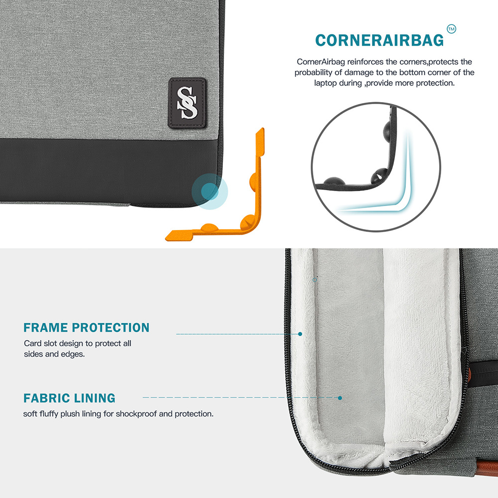 Taška je vyrobena ze tří vrstev textilie - vnější voděodolný materiál, který odolá cákancům vody, střední nárazu vzdorný materiál a vnitřní měkký materiál. Díky těmto třem textiliím máte jistotu, že je vaše zařízení v bezpečí za všech okolností. Rohy brašny jsou navíc opatřeny ochranou rohů zařízení.