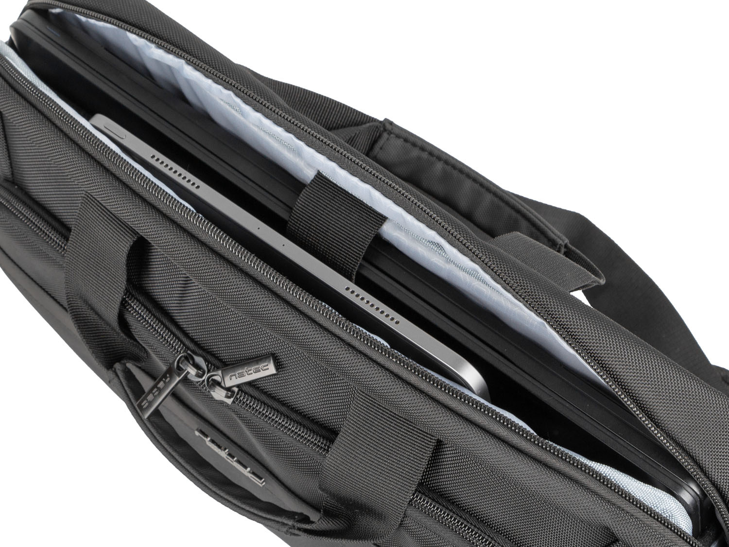 S brašnou Natec Kudu se nemusíte obávat poškození zařízení. Tato elegantní brašna vám umožní chránit tablet i notebook s maximální úhlopříčkou 15,6", a to vše díky hlavnímu oddílu se dvěma přihrádkami polstrovanými měkkým materiálem. Pohodlí a bezpečí během každé cesty - to je Natec Kudu.