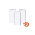 Třípásmový bezdrátový WiFi 6E Mesh systém pro pokrytí celého domu. Všechny tři moduly spolu navzájem komunikují a každý vytváří další pokrytí vašeho domu bezdrátovou sítí. Všechny moduly spolu komunikují souběžně v pásmu 2,4GHz, 5GHz a 6GHz. Díky kruhové komunikaci ja zajištěno mnohem vyšší pokrytí a stabilní rychlost než např. u řešení WiFi routeru s extendery. WiFi síť se navíc tváří pouze jako jediná (jednotné SSID), již se nemusíte přepojovat mezi několika sítěmi. Jednotlivé moduly si automaticky a to zcela bez výpadku nebo vašeho postřehnutí přepojují vaše koncové zařízení dle toho, kde se nacházíte. Např. při telefonování přes Internet můžete volně přecházet mezi patry svého domu, po zahradě, a jednotlivé moduly si váš mobilní telefon mezi sebou přepojují tak rychle, že nedochází k jedinému výpadku nebo přerušení. Navíc je možné dokoupit další moduly a zvýšit tak pokrytí sítě.