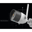 Venkovní IP kamera s online sledováním pomocí mobilního telefonu a tabletu. Ukládání záznamů a fotografií na microSD kartu nebo Cloud. Rozlišení FullHD pro video ve vysoké kvalitě, denní i noční provoz díky IR dosvitu až 30 m, ohnisková vzdálenost 4,0 mm, Wi-Fi b/g/n, 1x LAN RJ45 10/100 Mb/s, mikrofon a reproduktor, slot pro microSD kartu s velikostí až 128 GB. Kamera podporuje S-motion - automaticky ostří optiku tam kde je pohyb. Součástí balení je držák na stěnu/strop.