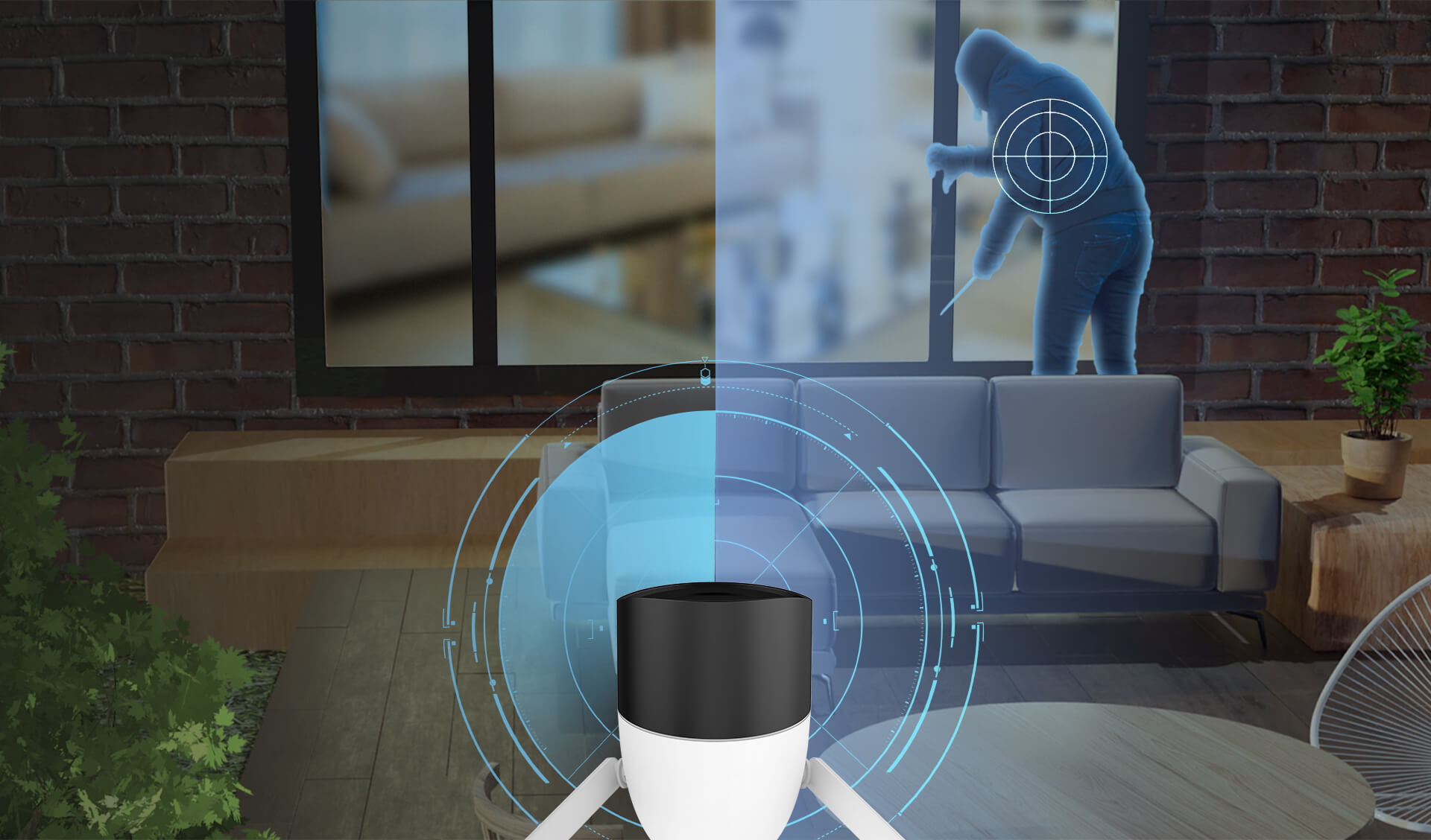 Díky této funkci kamera automaticky ostří tam kde rozeznává pohyb, nejen za lidským tělem. K této funkci je možné nastavit chování alarmu - výstraha pomocí bílých blikajících LED diod, výstraha pomocí zvuku, buď siréna nebo vlastní 10ti vteřinový záznam zvuku (až 3 nahrávky). Také je možné ponechat potichu a bez LED světla. Dále nastavení notifikací do mobilního telefonu, nahrávání při detekci pohybu apod.