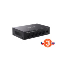 Switch 5x 10/100/1000 Mb/s, Auto MDI/MDIX, Fanless - pasivní chlazení bez ventilátoru, non-blocking architektura, 2K MAC adresace, přepínací kapacita 10 Gb/s. Kovový obal. Externí zdroj.