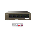 Napájecí adaptér: neobsahuje, switch je napájen z předchozího zařízení v síti pomocí PoE IEEE 802.3at (50 - 57 V DC, 0.6A, 30W)