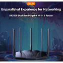 Gigabitový Wi-Fi 6 (AX3000) router 802.11 ax/ac/a/b/g/n, zabezpečení WPA3, Wi-Fi+ Mesh, SMART CZ aplikace, VPN server/client, 1x GWAN, 3x GLAN, 5x anténa 6 dBi, až 2976 Mb/s (2,4GHz 574 Mb/s + 5GHz 2402 Mb/s), IPv6, Repeater mode, MU-MIMO, Beamforming.
