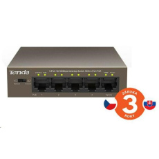 Tenda TEF1105P-4-63W je 5ti portový Fast Ethernet PoE switch s napájením PoE af/at. 4 porty 10/100 M