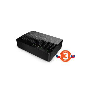 Switch 5x 10/100/1000 Mb/s, Auto MDI/MDIX, Fanless - pasivní chlazení bez ventilátoru, non-blocking