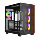 View 380 XL WS ARGB Mid Tower je dvojkomorový PC skrinka zvýraznená štýlovými drevenými prvkami. Podporuje Hidden-Connector základné dosky, je vybavená tromi 120mm ARGB Lite Reverse ventilátormi na strane základnej dosky a jedným 120mm ARGB Lite ventilátorom vzadu. Ponúka tiež priestor pre 360mm radiátor na vrchu aj na strane základnej dosky.