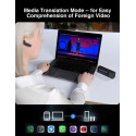 Zažite plynulý preklad pri sledovaní najnovších správ a videí v cudzom jazyku. Preklad a titulky v reálnom čase, vďaka čomu získate rýchly prístup k medzinárodným informáciám a poznatkom. W4 Pro prekladá video aj audio z vášho telefónu, tabletu alebo počítača a zobrazuje okamžité titulky. Je kompatibilný s obľúbenými streamovacími aj konferenčnými aplikáciami, aby ste vždy mali prehľad. Integruje sa do aplikácií ako Teams, Whatsapp, Wechat, Google Meet, Zoom a ďalších. Preklad môžete sledovať na vstavanom displeji alebo cez okno picture in picture priamo na vašom telefóne, tablete alebo notebooku. Preklad v tomto režime ponúka 500 minút mesačne zadarmo. Ďalšie minúty je možné dokúpiť cez účet na webovej stránke výrobcu.
