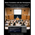 X1 funguje samostatne alebo v spojení so slúchadlami, čo prináša maximálnu flexibilitu pre rôzne situácie. Podporuje pripojenie až 20 zariadení, ktoré možno ľahko synchronizovať do jednej skupinovej konverzácie. Používatelia môžu komunikovať v reálnom čase a každý počuje preklad vo svojom jazyku. Ideálne riešenie pre firemné porady, workshopy alebo medzinárodné konferencie. Umožnite svojim tímom hovoriť slobodne bez jazykových bariér a posilnite spoluprácu na všetkých úrovniach.