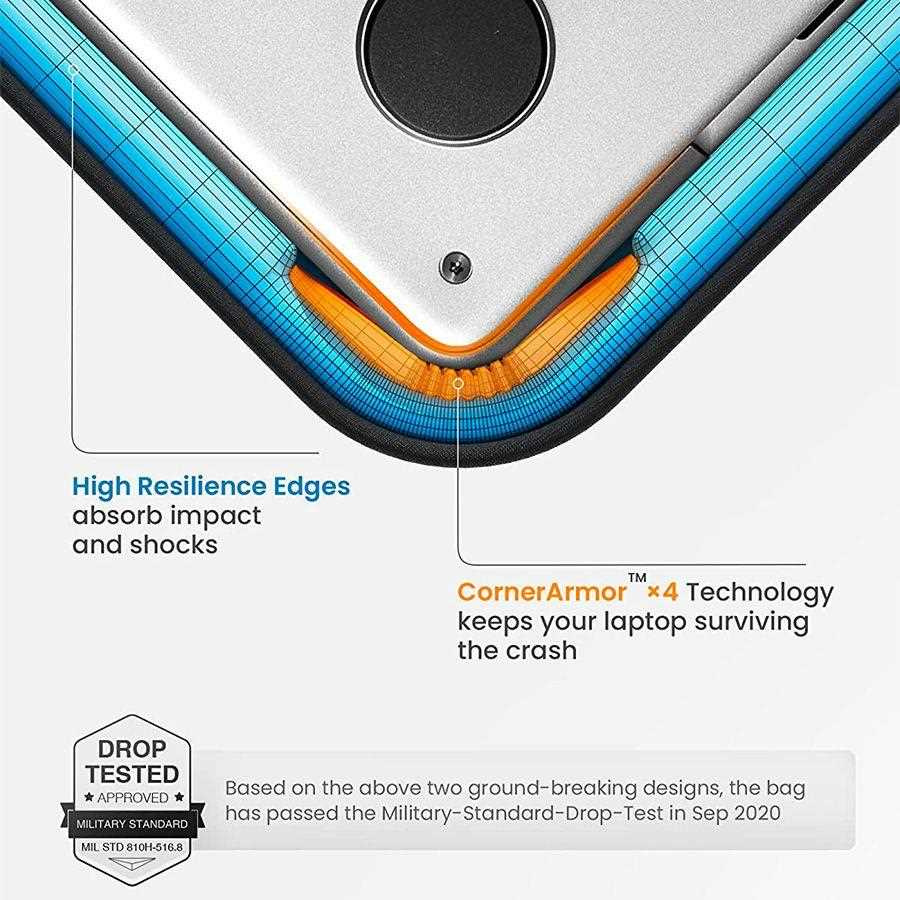 Ako čo najlepšie ochrániť svoj milovaný Mac proti poškriabaniu a poškodeniu pri pádoch? Tento úlohu s pokojom zverte novému púzdru tomtoc. Jeho rohy a hrany sú vyztužené originálnou technológiou CornerArmor. Tá spĺňa vojenský štandard pre pádové skúšky. Nejde ale len o ochranu najzraniteľnejších častí zariadenia. Uvnútri púzdra nájdete veľmi mäkkú plyšovú podšívku a polstrovanie, s ktorým bude notebook doslova ako v bavlne. Poškriabaniu šasi zipom zabránime ochranným hrebeňom po celom jeho obvode - jeden z mnohých malých detailov, ktoré znamenajú obrovský rozdiel.